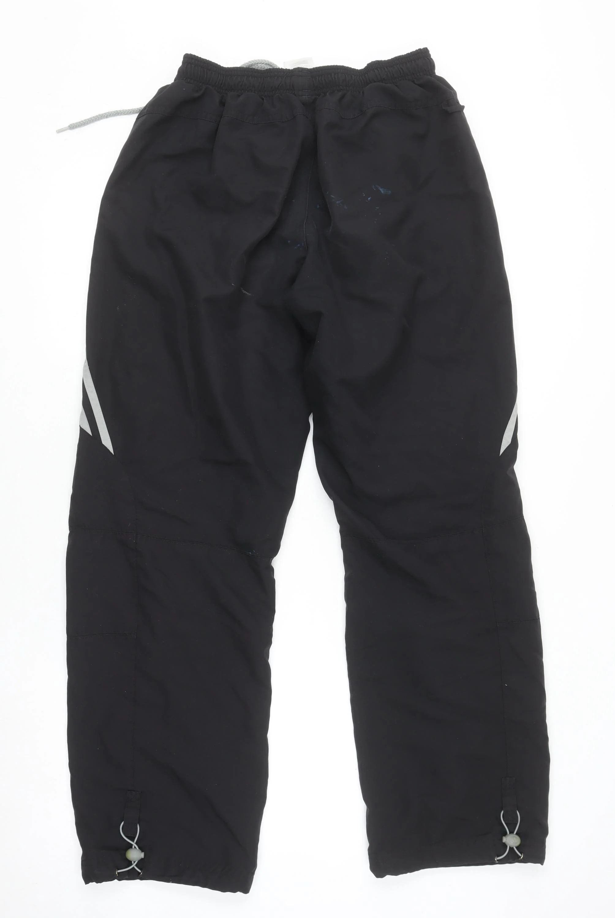 Step up your athletic wear with these adidas men’s black track pants, crafted for performance and everyday comfort. These trousers feature the iconic three-stripe detailing along the sides and the signature adidas logo on the front, providing a timeless sporty look. Designed in a regular fit, they’re ideal for gym training, running, or casual wear. The track pants are made from 100% woven polyester, which provides lightweight breathability and durability for long-lasting use. The adjustable drawstring waistband ensures a personalised, snug fit, making them suitable for a range of body types. The addition of side pockets ensures practicality, allowing for convenient storage of small essentials during workouts or commutes. These trousers are fully machine washable for easy care and maintenance, ensuring they stay fresh and ready to wear again and again. Perfect for all seasons, they work equally well as part of a warm-up outfit or casual weekend look. The track pants deliver both function and style, offering a sleek athletic silhouette that complements any active or athleisure wardrobe. Condition is very good overall, with minor signs of gentle wear and slight marks that do not affect the appearance or quality. Whether heading to the gym, going for a jog, or relaxing in comfort, these adidas black track pants are a versatile and stylish choice. Ideal for men who value both performance and fashion, these tracksuit bottoms bring effortless sporty appeal to any outfit.