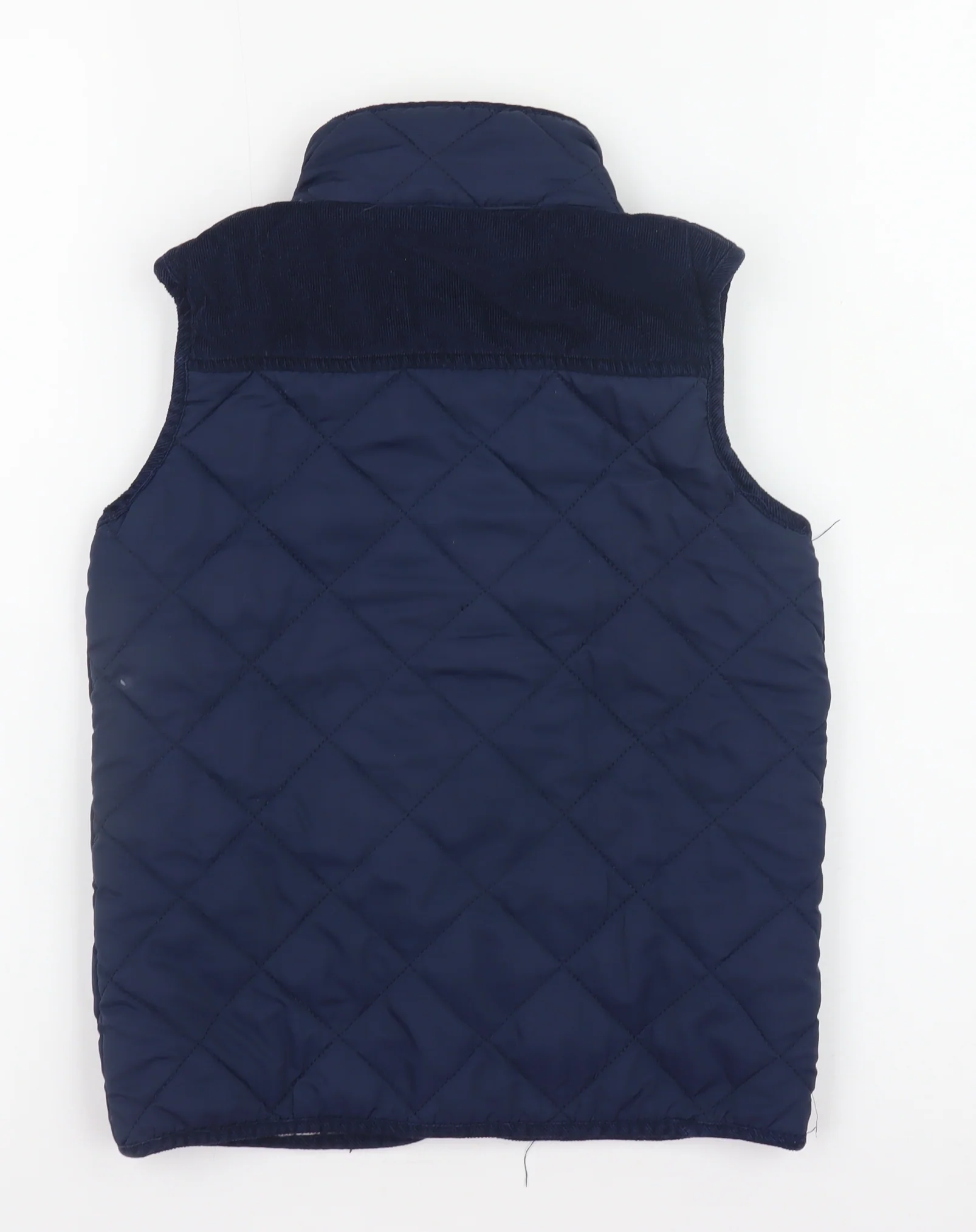 Keep your little one looking smart and feeling cosy in this JoJo Maman Bébé boys’ quilted waistcoat, ideal for layering through Autumn and Winter. Crafted from a durable 100% polyester outer shell with a soft cotton lining, this sleeveless gilet is designed for everyday comfort and warmth. The navy blue colour gives a classic, versatile look that pairs easily with casual outfits. The waistcoat features diamond quilting for an insulated finish, alongside press-stud snap closures for easy wear. Two front buttoned pockets add both style and functionality, perfect for keeping small essentials tucked away. Lined with breathable cotton, it ensures a comfortable fit whether worn over a jumper or long-sleeve tee. With its lightweight padded construction, it provides just the right amount of warmth without bulk, making it perfect for outdoor adventures, school days, or casual weekend wear. The standout detail includes corduroy trim accents and a subtle red embroidered logo, adding a refined touch to this timeless piece. In excellent pre-owned condition with no visible flaws and the interior label ready to personalise, this JoJo Maman Bébé gilet remains a high-quality and practical choice for cool weather layering. Machine washable for easy care, it’s both stylish and durable—exactly what parents and kids love. A versatile addition to any young boy’s outerwear collection that blends comfort, warmth, and classic British charm.