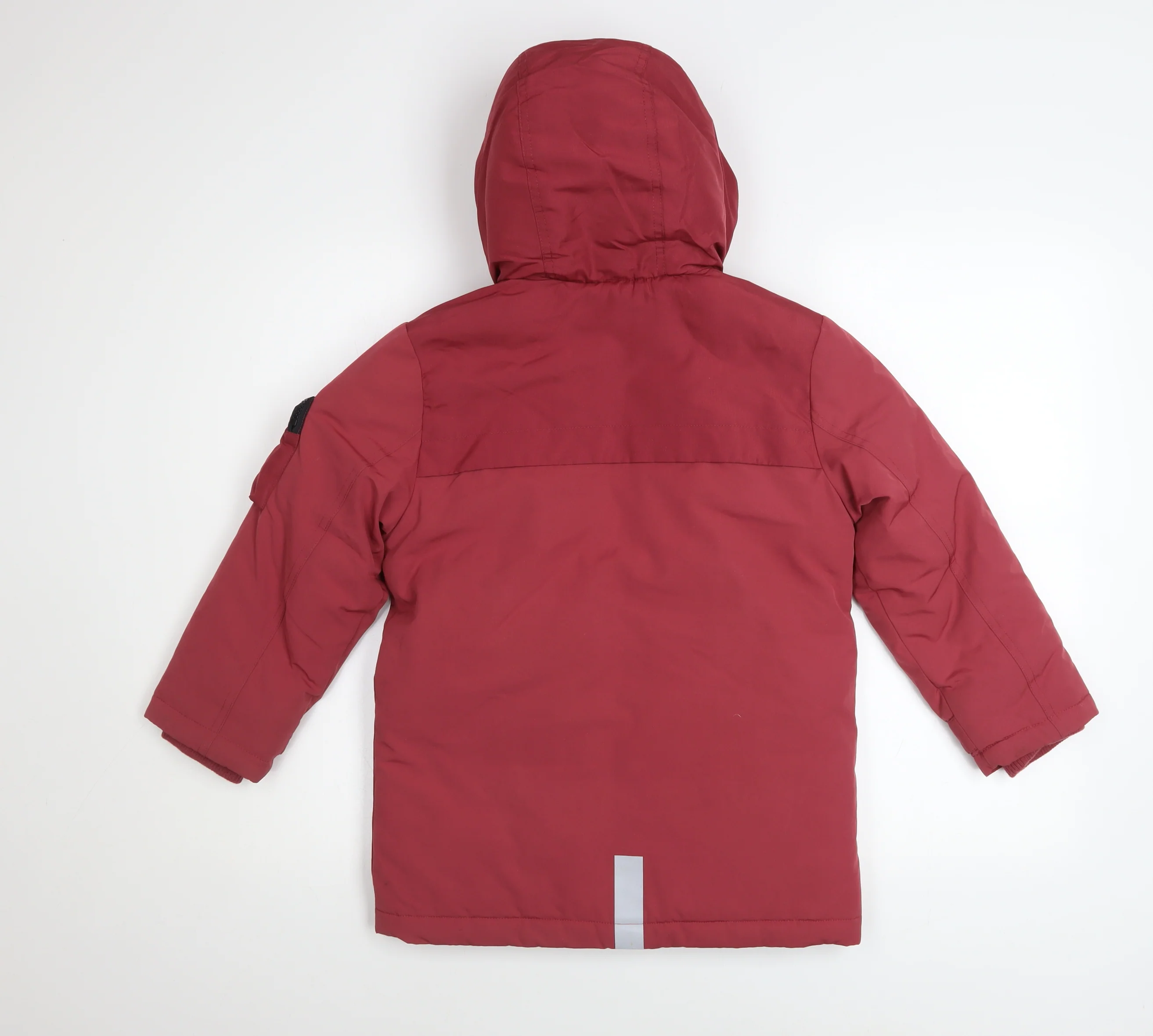 Keep your little one cosy and stylish in this Marks and Spencer Boys Red Hooded Parka Coat, designed with practicality and comfort in mind. Made from a durable blend of 83% polyester and 17% cotton for the outer shell, this mid-length parka offers excellent warmth and resilience against everyday wear. The coat is padded with 100% polyester insulation for added warmth, ideal for chilly autumn and winter days. The smooth 100% polyester lining ensures a comfortable fit, making it easy to layer over school uniforms or casual outfits.This red parka features a full zip fastening reinforced with a buttoned storm flap to help keep wind and rain at bay. The attached hood adds an extra layer of protection, perfect for unpredictable weather. Two spacious front pockets with zip closures provide both functionality and style, great for storing small essentials or keeping hands warm. The sleeve pocket and reflective strip on the back offer added practicality and visibility for outdoor play. Adjustable cuffs with Velcro straps help lock in heat and ensure a good fit.Designed for boys aged 6–7 years (height 122cm, chest 63cm), this jacket delivers a regular fit that allows movement while maintaining a sophisticated classic look. The water-resistant fabric makes it a smart choice for school runs, park visits, or outdoor adventures. Thoughtfully machine washable, it’s easy for parents to care for.Despite minor signs of use with a few light marks, this coat remains in very good condition with no damage and plenty of warmth left to give. A dependable and durable piece that combines everyday practicality with classic M&S quality. Ideal for parents seeking reliable outerwear for their child at an affordable price, this functional winter parka is a great wardrobe staple for the colder months.