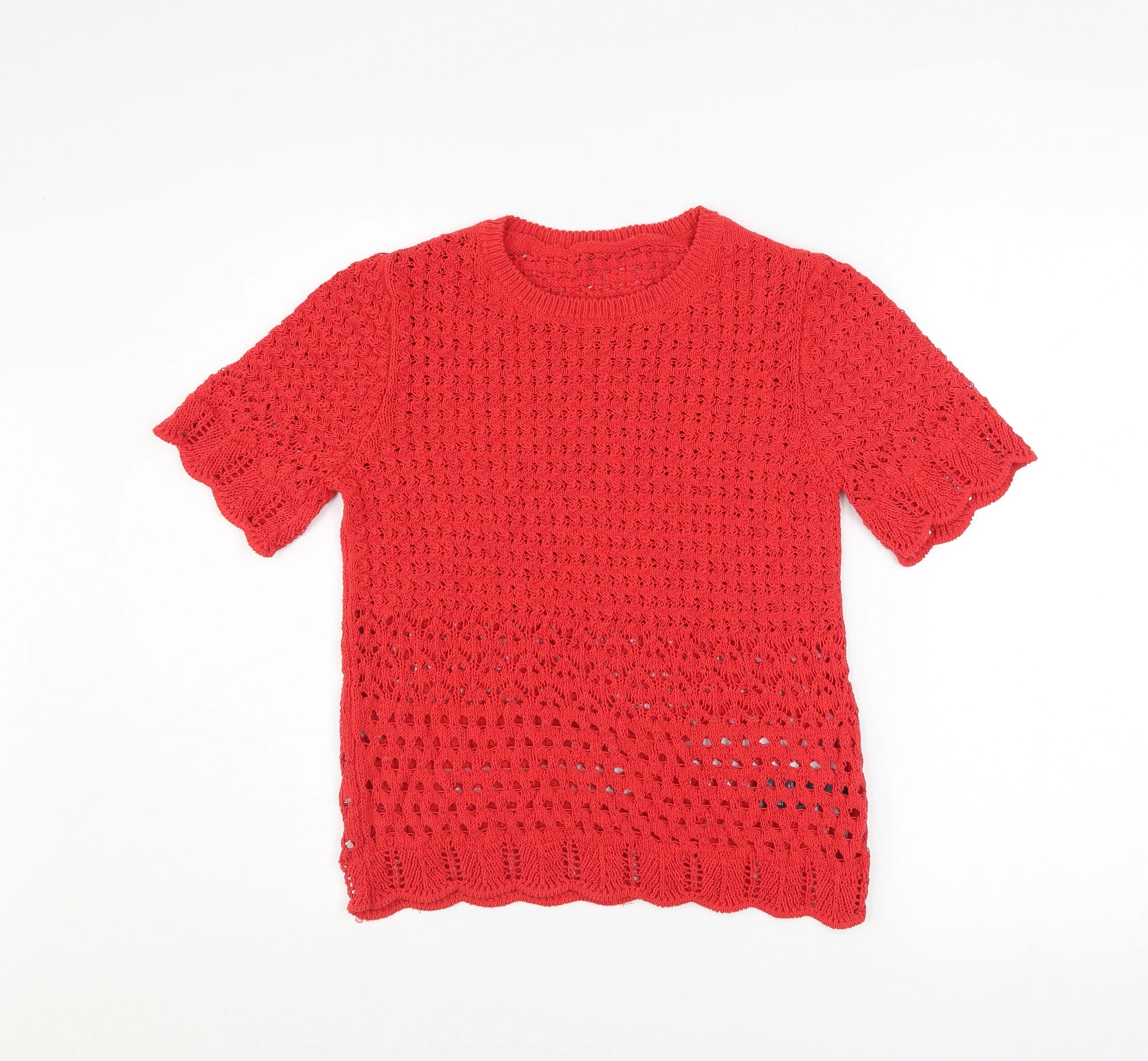 Marks and Spencer Women Red Crochet Knit Short Sleeve Top Size S—