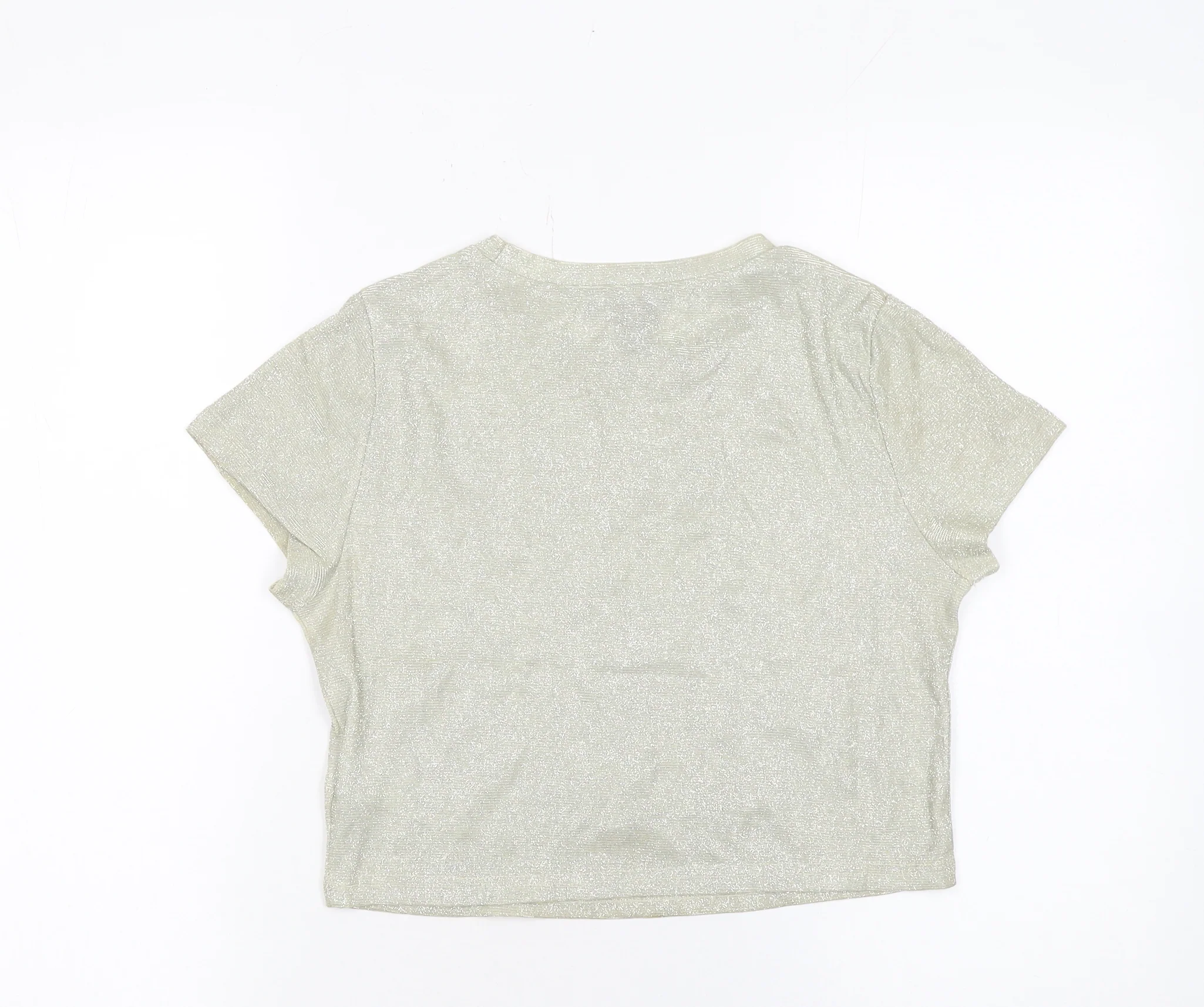 New Look Women Gold Cropped Glitter T-Shirt Size 8 Short Sleeve