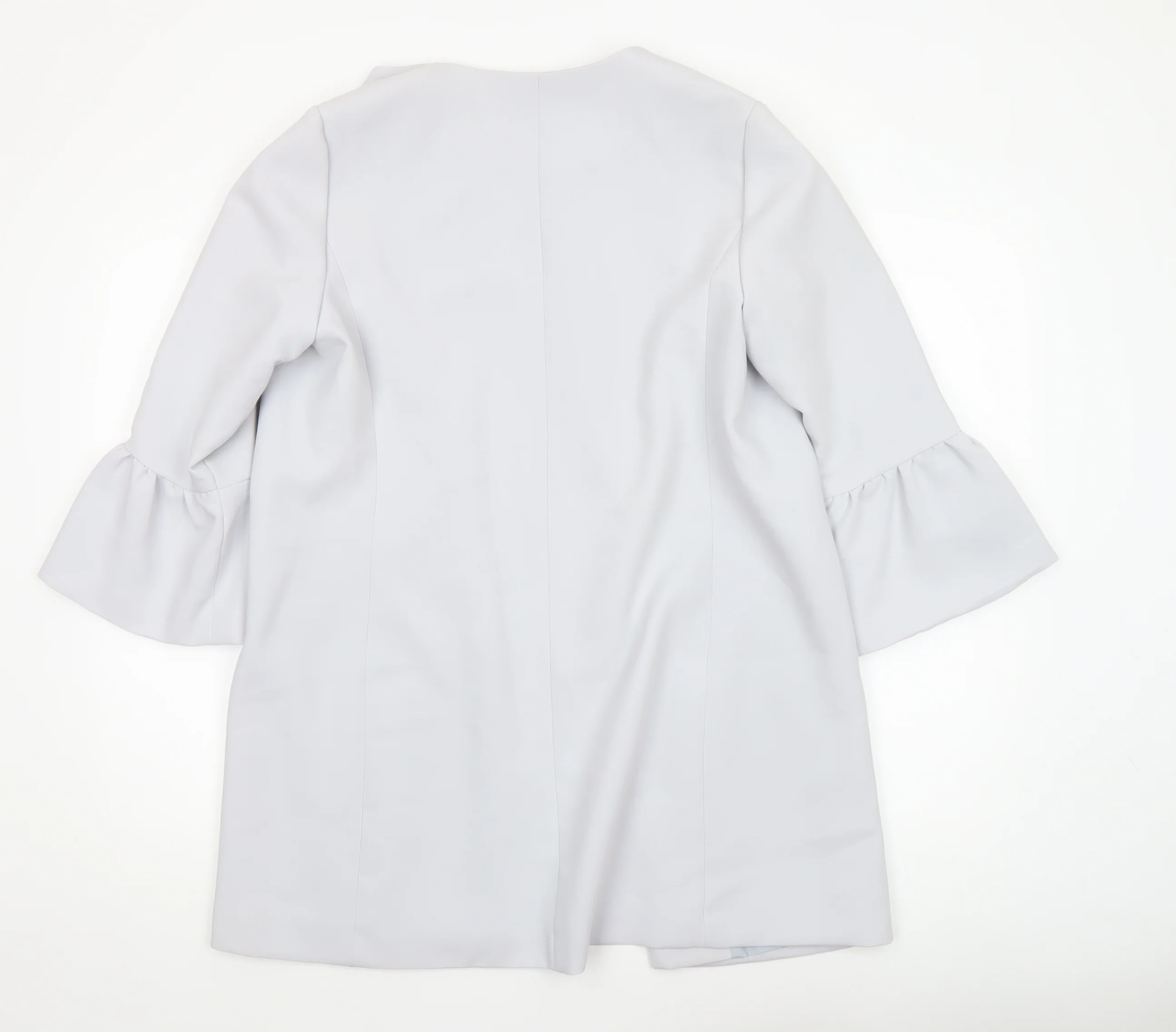 New Look Women’s Grey Mid-Length Ruffle Sleeve Open Coat Size 12—