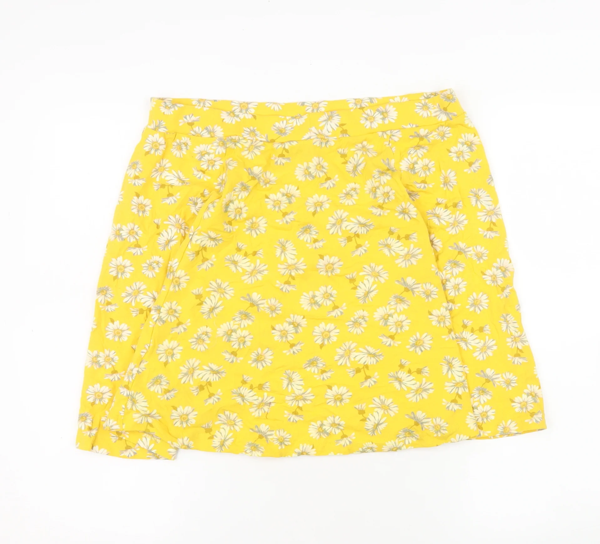 New Look Women Yellow Floral A-Line Skirt Size 16 Cotton Blend