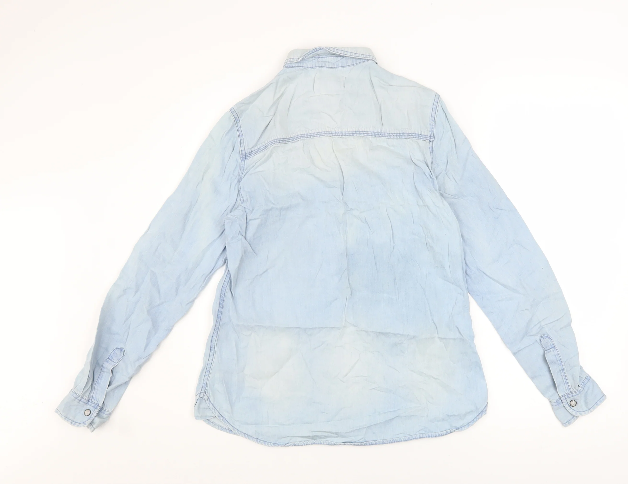 New Look Women's Blue Denim Long Sleeve Button-Up Shirt Size 10—