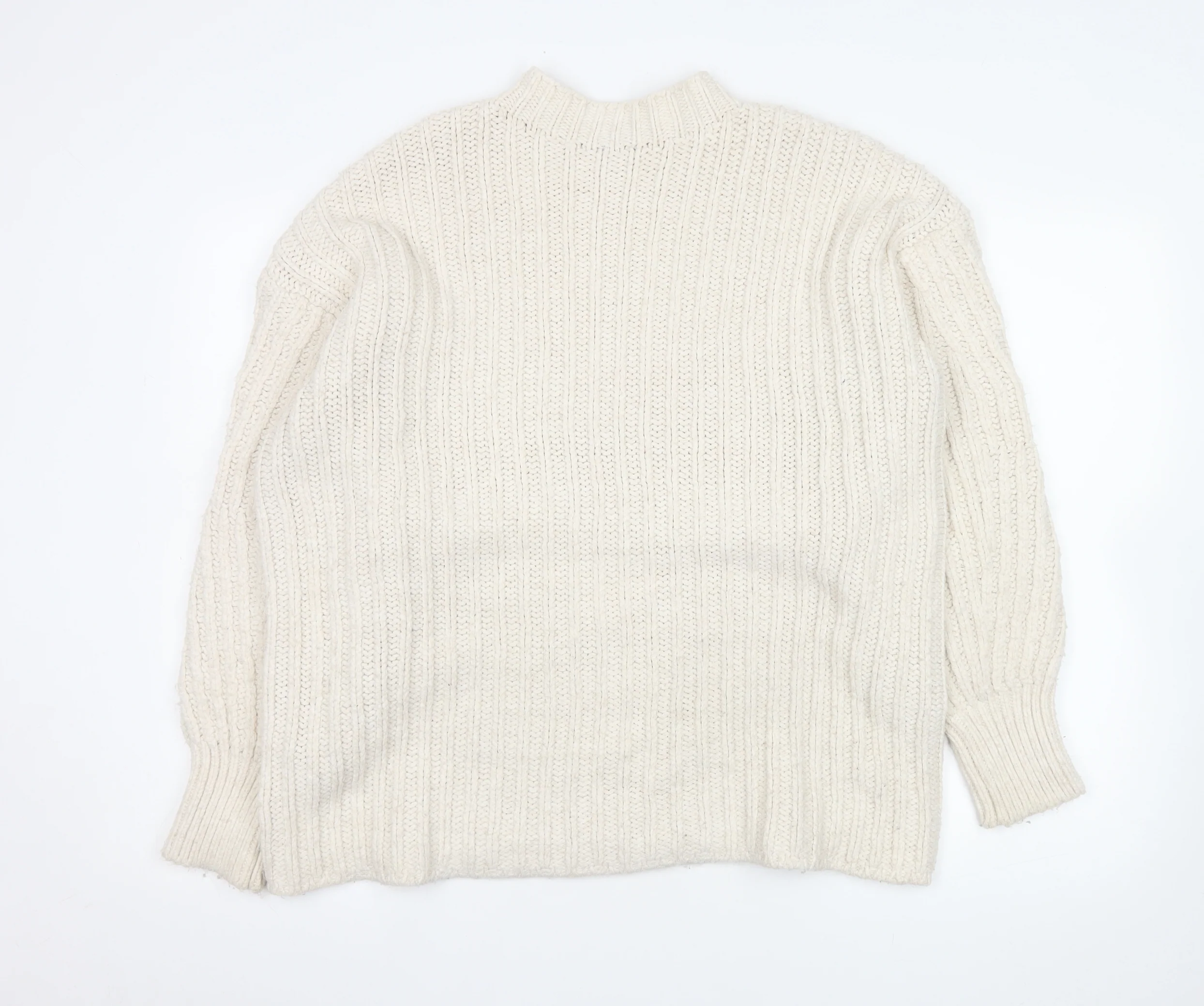 Stay effortlessly stylish and cosy with this beautiful women’s ivory chunky-knit jumper from Topshop. Crafted with care in Turkey, this pullover jumper features a classic relaxed fit and mock neck design, perfect for layering on cooler days. The soft knitted texture offers a timeless aesthetic that’s both chic and versatile, making it ideal for pairing with your favourite jeans or skirts for easy everyday wear. Designed in a comfortable blend of 90% acrylic, 5% polyester, and 5% polyamide, this jumper feels snug yet breathable, providing lightweight warmth without heaviness. The ribbed cuffs and hemline add gentle structure, while the mock neck provides extra coverage and a modern, minimalist silhouette. This piece offers a clean, elegant ivory tone that complements any wardrobe and can be effortlessly styled for both casual and smart occasions. Practical and machine washable, it’s an easy-care option for busy lifestyles. In excellent pre-owned condition with only light signs of wear, this Topshop jumper is a perfect choice for those seeking quality knitwear that balances comfort and fashion. Ideal for cooler months like autumn and winter, this piece maintains a cosy feel while adding sophistication to your ensemble. Offering a relaxed fit that moves with you, it’s well suited for everyday casual outings, laid-back weekends, or even a smart-casual work setting. Topshop’s attention to detail ensures you’ll enjoy both style and durability from this essential knitwear piece. A true wardrobe staple for any season, this ivory jumper brings warmth, softness, and style together effortlessly — a must-have addition to your knitwear collection.